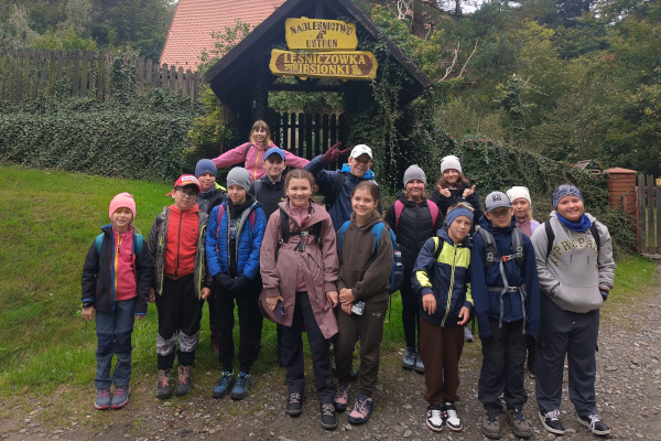 15 osób wraz z p. Agnieszką Matera i p. Moniką Żak wyruszyło z Jaworza Nałęża szlakiem szklanym na szczyt Błatniej. Po dwóch godzinach marszu dotarliśmy do celu, zrobiliśmy pamiątkowe zdjęcia, chętni udali się po pieczątki do schroniska, a później poszliśmy do Rancza Błatnia, aby usmażyć sobie kiełbaski.