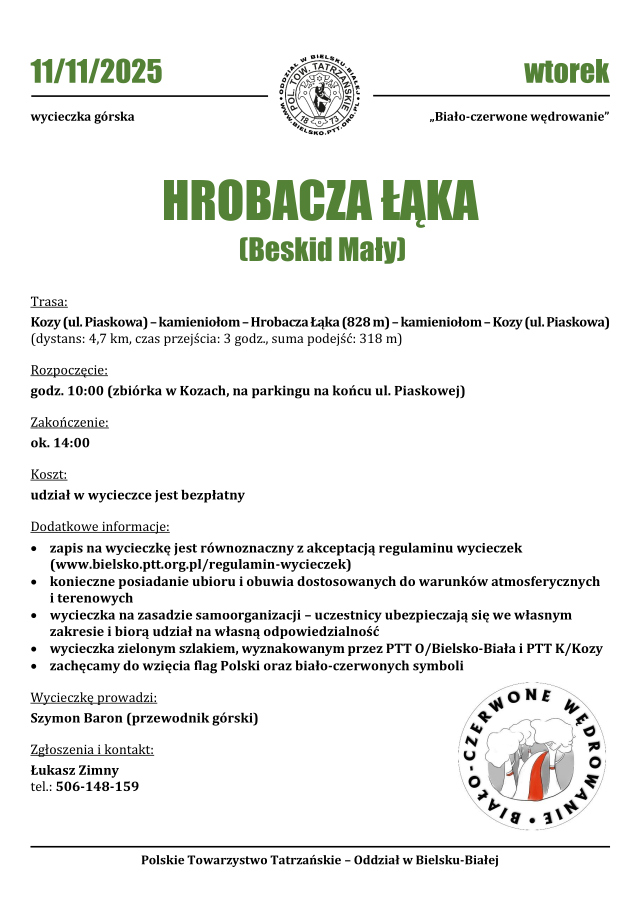 Hrobacza Łąka (Beskid Mały) – wycieczka górska pt. „Biało-czerwone wędrowanie”