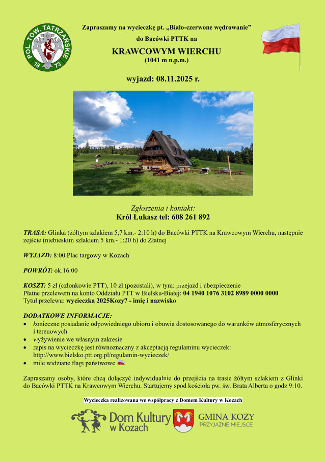 Krawców Wierch (Beskid Żywiecki) – wycieczka górska pt. „Biało-czerwone wędrowanie” (PTT K/Kozy)